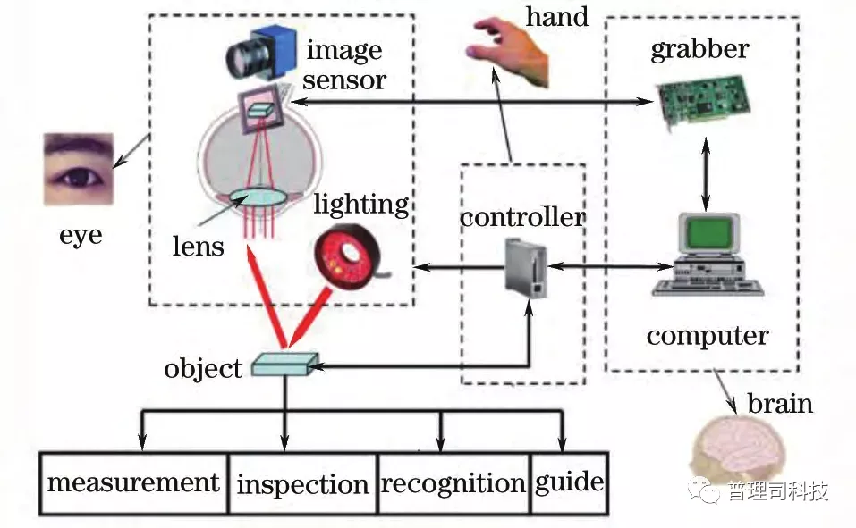 AOI实际上是一种智能化的自动光学成像与处理系统,即用各种光学成像技术与系统模拟人眼的视觉成像功能,用计算机处理系统代替人脑执行实时图像处理、特征识别与分类等任务,最后把结果反馈给执行机构,代替人手进行操作。