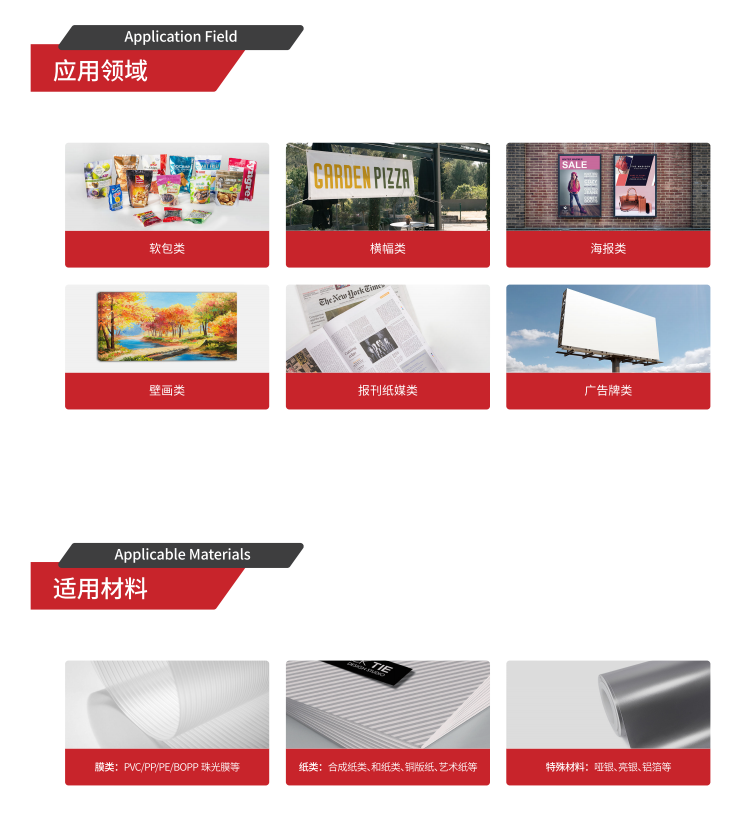 1. 承印宽幅850mm~1500mm,实现幅面无极变换,工业化柔性生产。 2. 覆盖家用装饰、办公、广告等多领域的个性化生产; 3. 可以在任何时间按照客户的需求数量进行印刷,这样可以保证最低库存,内容变化更加灵活以,全面降低印刷成本。
